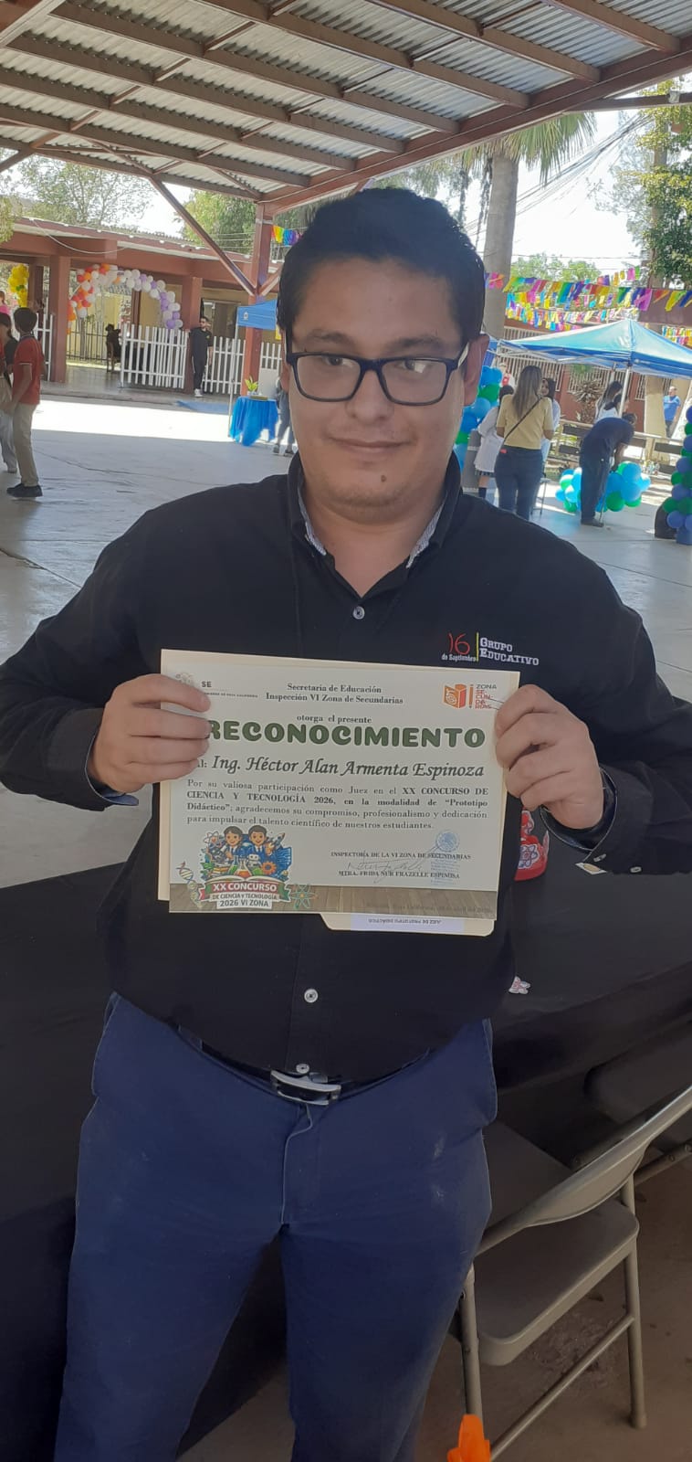 En representación del Grupo Educativo 16 de Septiembre, el Ing. Héctor Alan Armenta Espinoza, docente de la carrera de Ingeniería Industrial, formó parte del jurado en la categoría de prototipo didáctico. Su participación consistió en evaluar los proyectos presentados, reconociendo aquellos con mayor potencial de desarrollo e impacto a futuro.