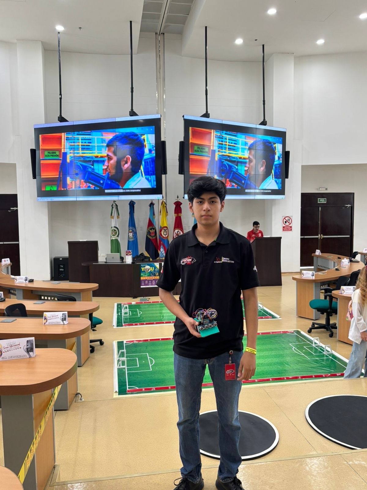 Nos llena de orgullo compartir que nuestro alumno Wilber Arano ha puesto en alto el nombre de nuestro equipo y de nuestra institución al obtener el 3er lugar en la categoría Mini Sumo durante el Torneo Internacional de Robótica Robokids, celebrado en la Universidad Militar Nueva Granada en Bogotá, Colombia.